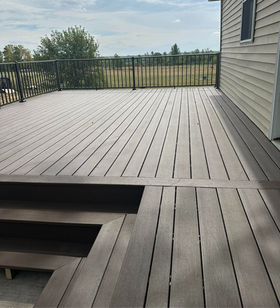 Composite decking (aka Trex decking) is made up of wood pulp and recycled plastic. Compared to natural wood, composite decks are more resistant to insects and moisture.